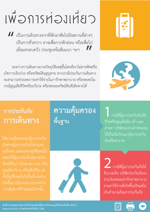 สำหรับการประกันการเดินทาง โดยเฉพาะการเดินทางไปยังต่างประเทศ ความคุ้มครองจากประกันเดินทาง ไม่ว่าจะเป็นความคุ้มครองจากอุบัติเหตุ ความคุ้มครองต่อทรัพย์สิน และความคุ้มครองเมื่อมีการยกเลิกการเดินทาง สามารถช่วยแบ่งเบาภาระค่าใช้จ่าย และความเสี่ยงให้กับผู้เดินทางได้เป็นอย่างดี