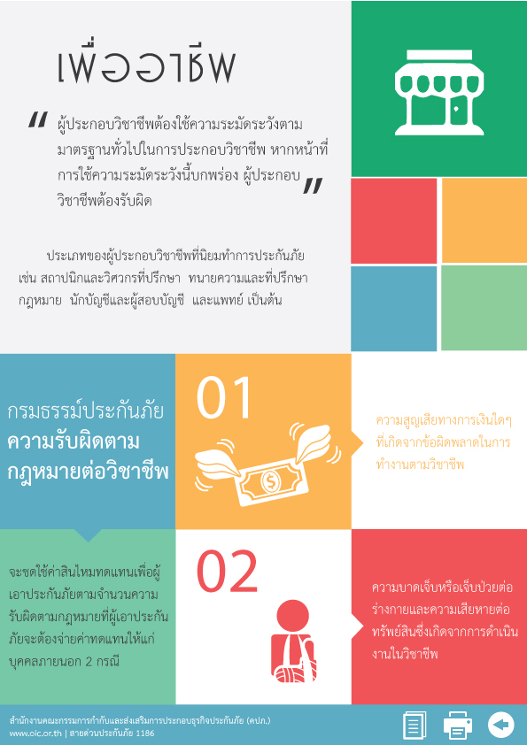 การทำประกันประเภทนี้จะให้ความคุ้มครองต่อบุคคล หรือองค์กรธุรกิจ ที่ประกอบวิชาชีพต่างๆ เช่น
